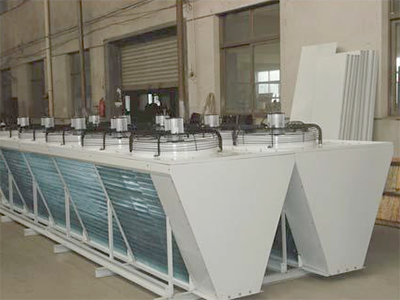 空氣冷卻器簡稱空冷器,以空氣作為冷卻劑,可用作冷卻器,也可用作冷凝器。空冷器主要由管束、支架和風機組成。空氣冷卻器熱流體在管內流動,空氣在管束外吹過。由于換熱所需的通風量很大,而風壓不高,故多采用軸流式通風機。