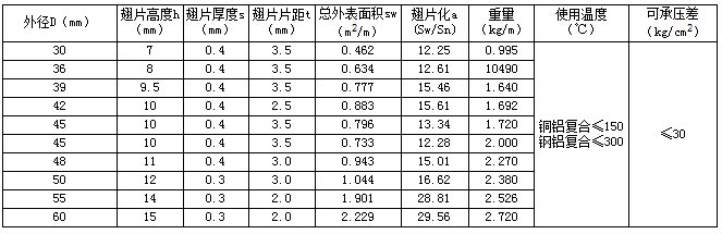 雙金屬復合翅片管參數表